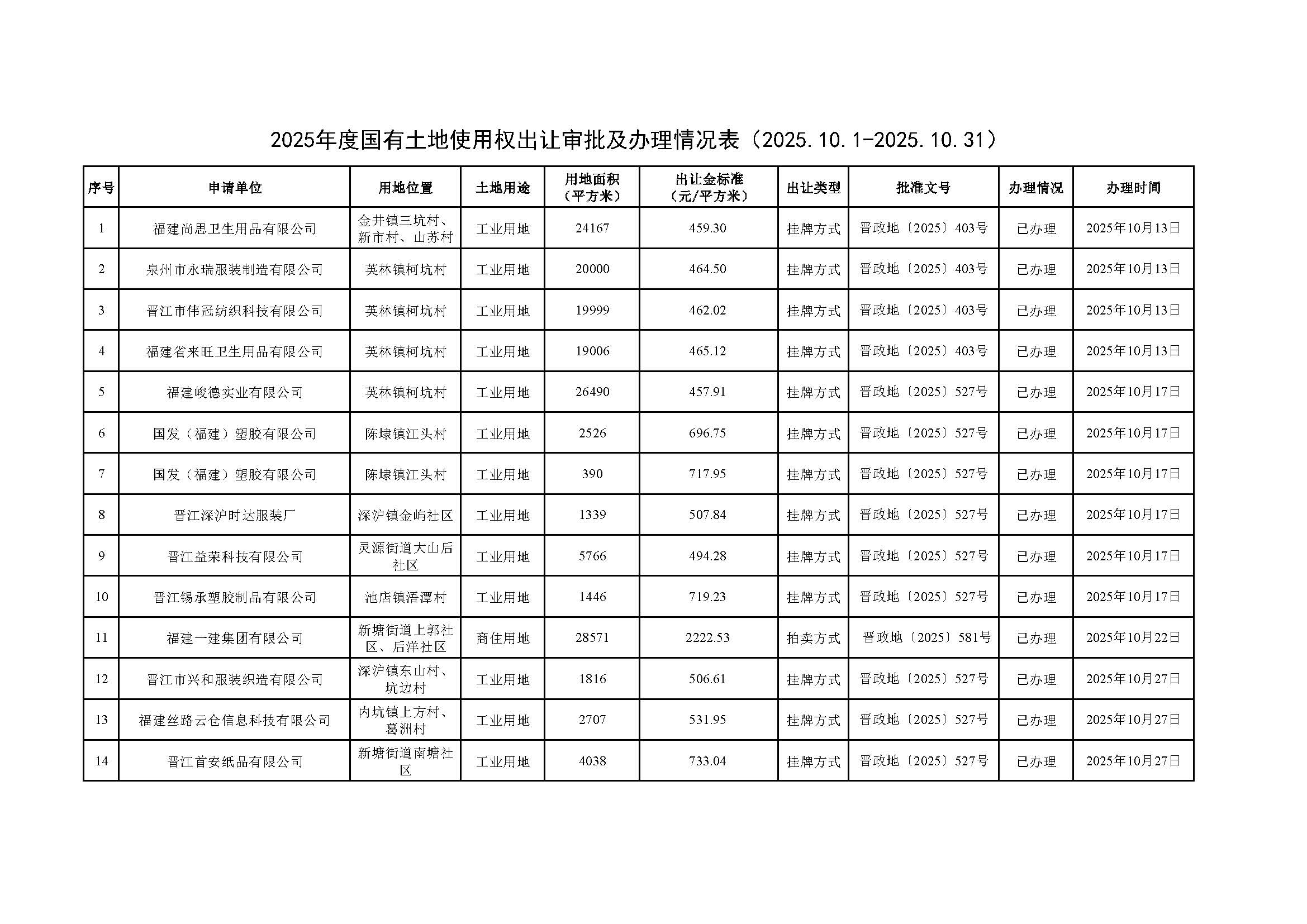 2025年度國有土地使用權(quán)出讓審批及辦理情況表(2025.10.1-2025.10.31)