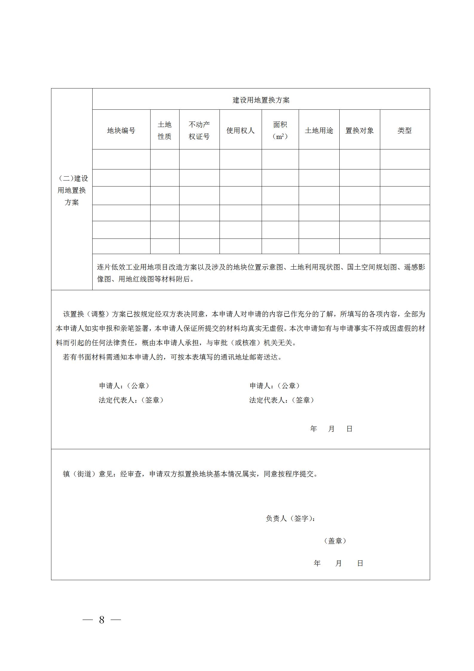 (四)市自然資源局出具的同意建設用地調整的批文、建設用地置換協議、晉江市連片低效工業用地改造項目建設用地置換(調整)申報表(不同時涉及土地置換情況的提供原件);