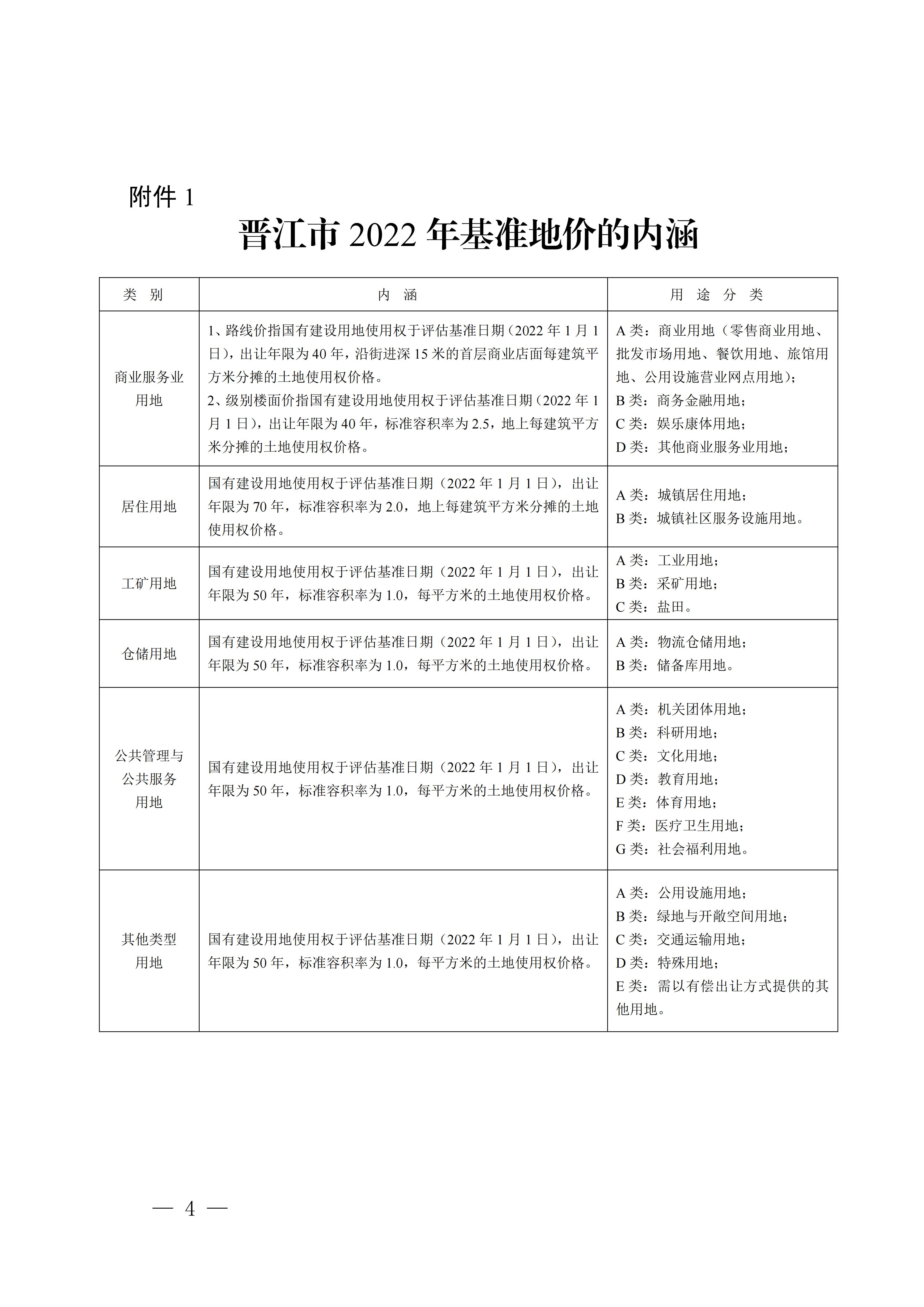 附件:1.晉江市2022年基準(zhǔn)地價的內(nèi)涵