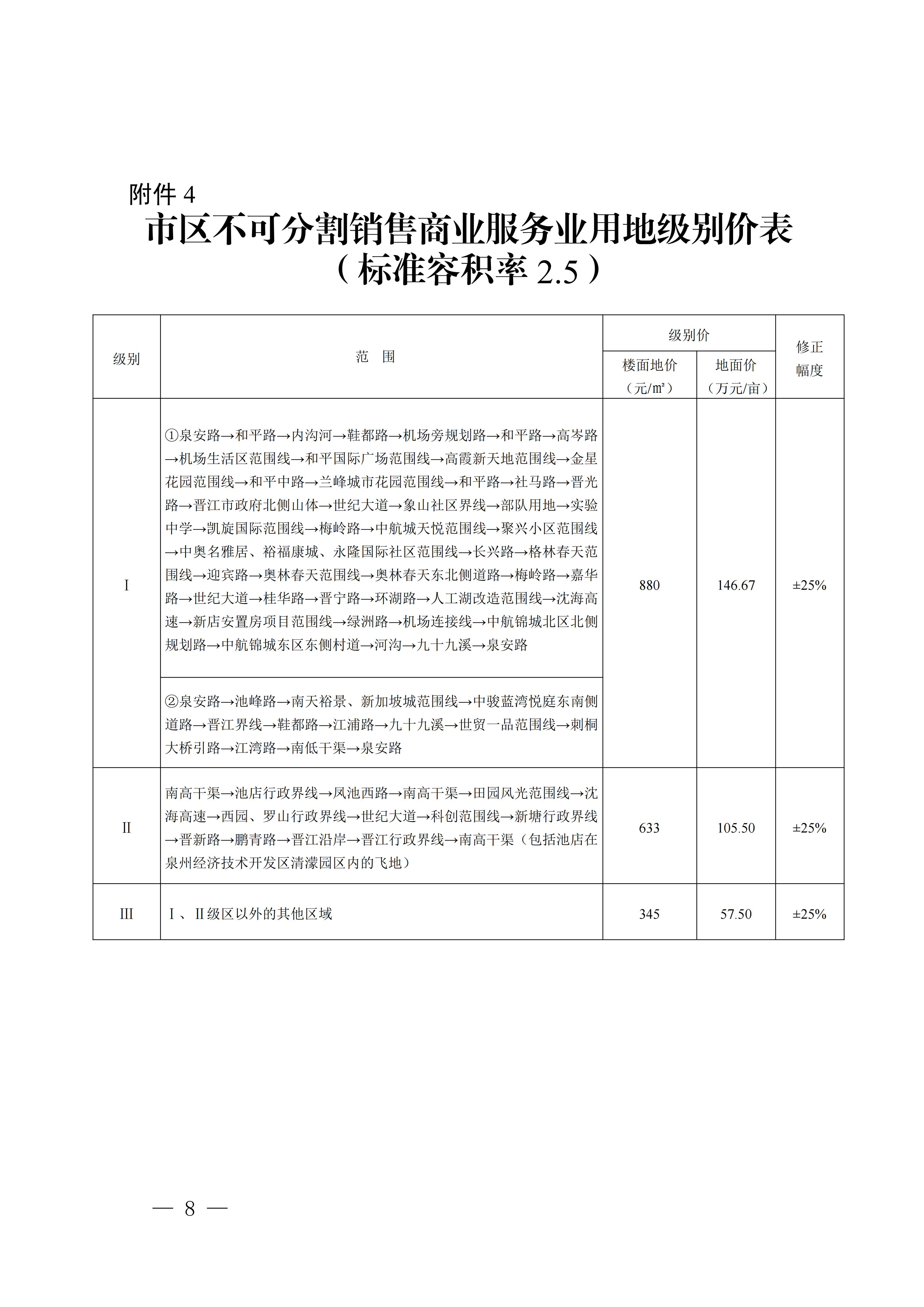4.市區(qū)不可分割銷售商業(yè)服務(wù)業(yè)用地級別價表(標(biāo)準(zhǔn)容積率2.5)