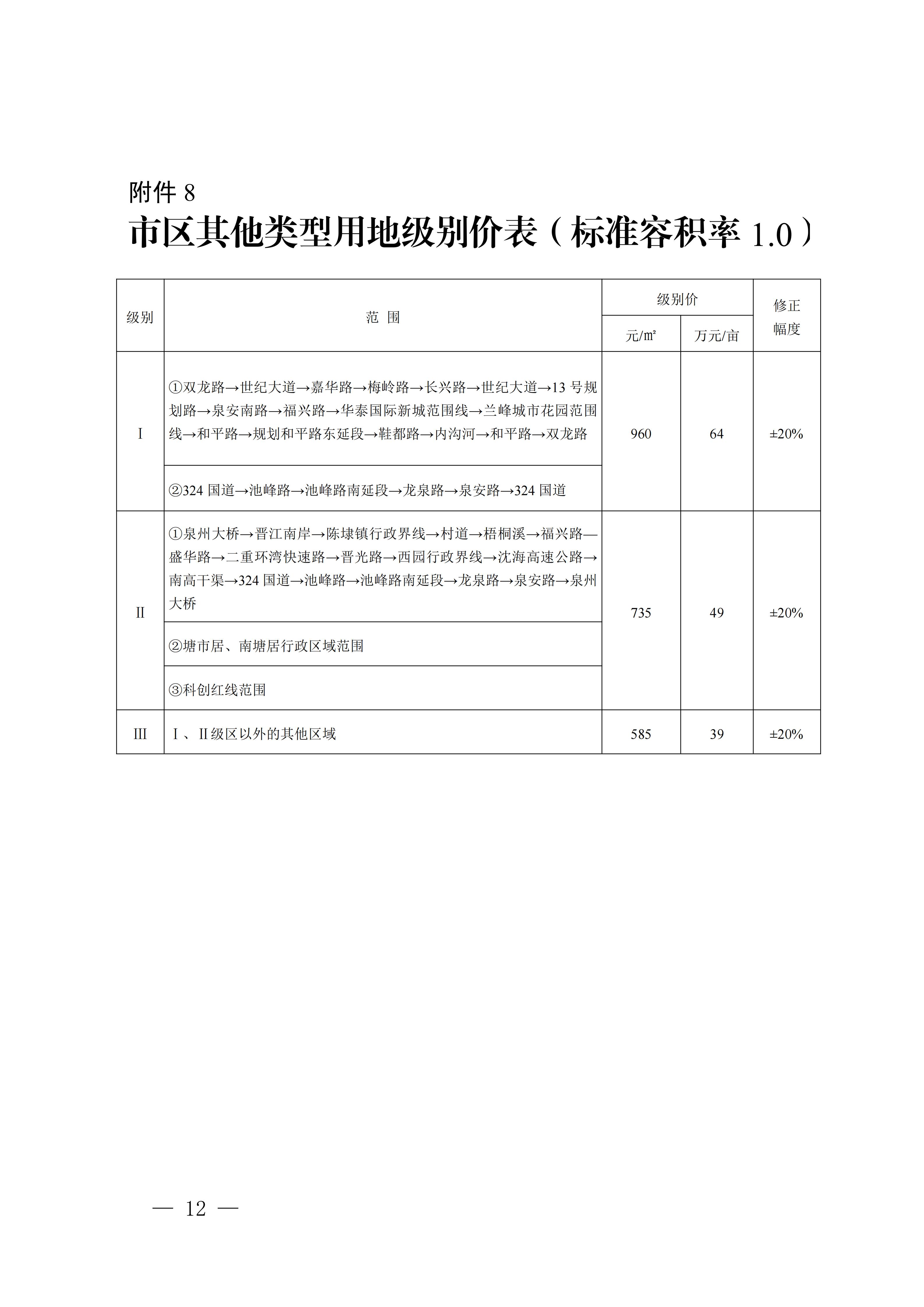 8.市區(qū)其他類型用地級別價表(標(biāo)準(zhǔn)容積率1.0)