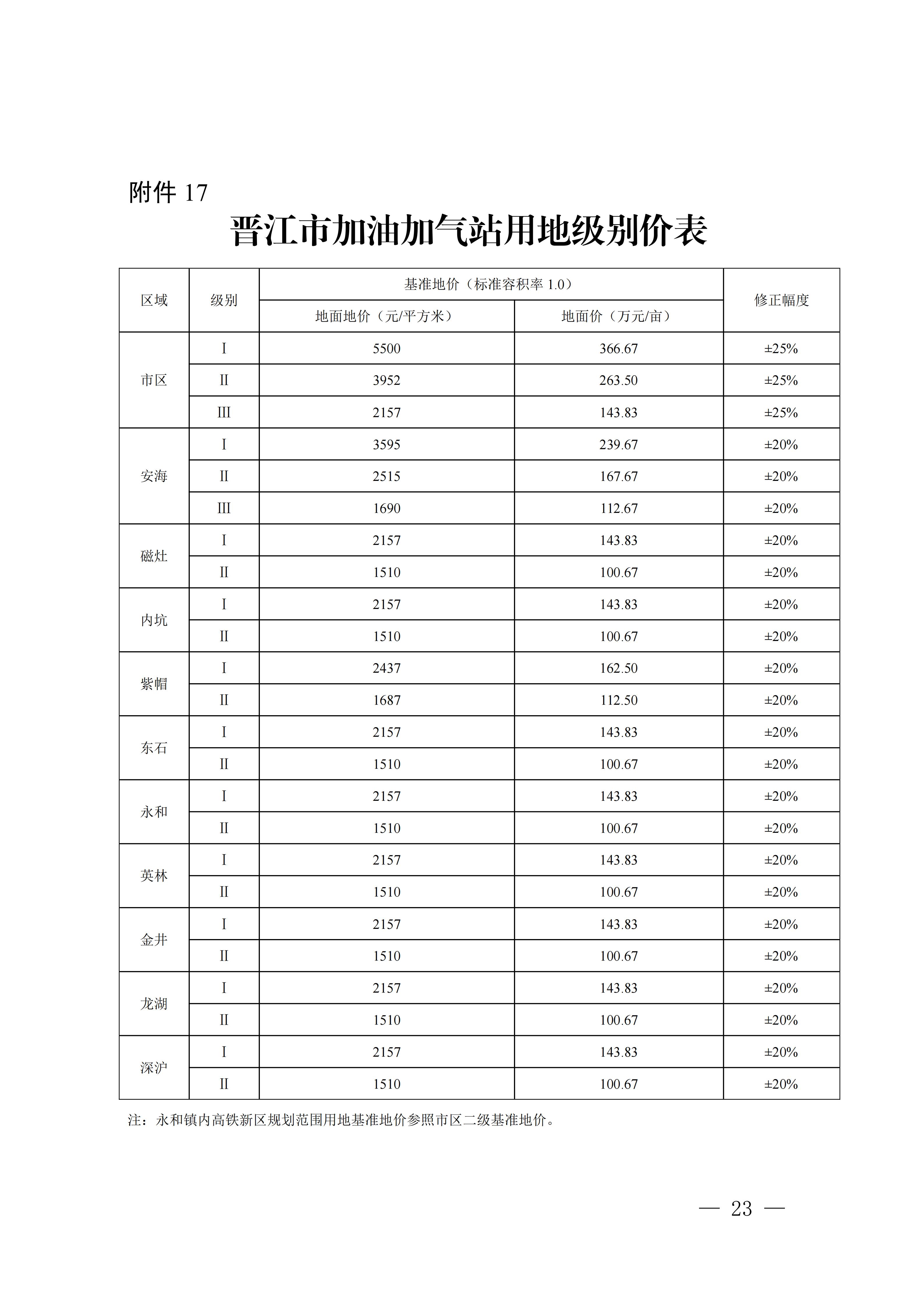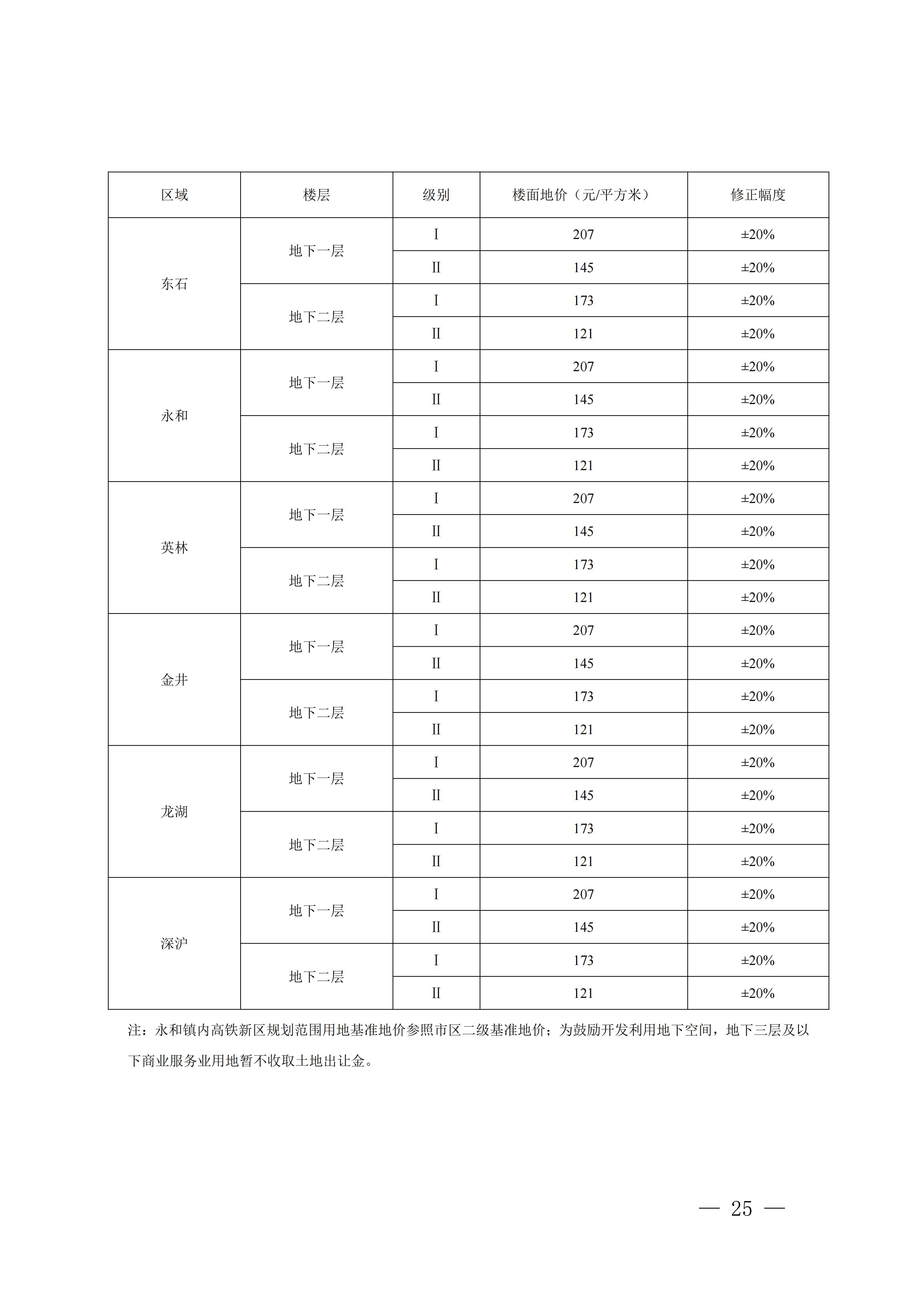 18.晉江市地下商業(yè)服務(wù)業(yè)用地級別價表