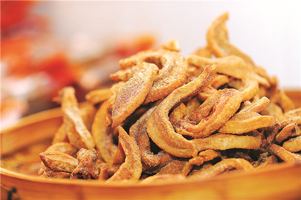 衙口豬油粕吃起來生脆,食畢,伸舌繞齒的,大概是不舍那咸香,非得以舌過一遍。那咸香,來自于特殊調料,如鹽、五香粉等,有的還添了蒜瓣,這樣的豬油粕,就不僅有香氣,還雜有其他味,更有嚼頭。